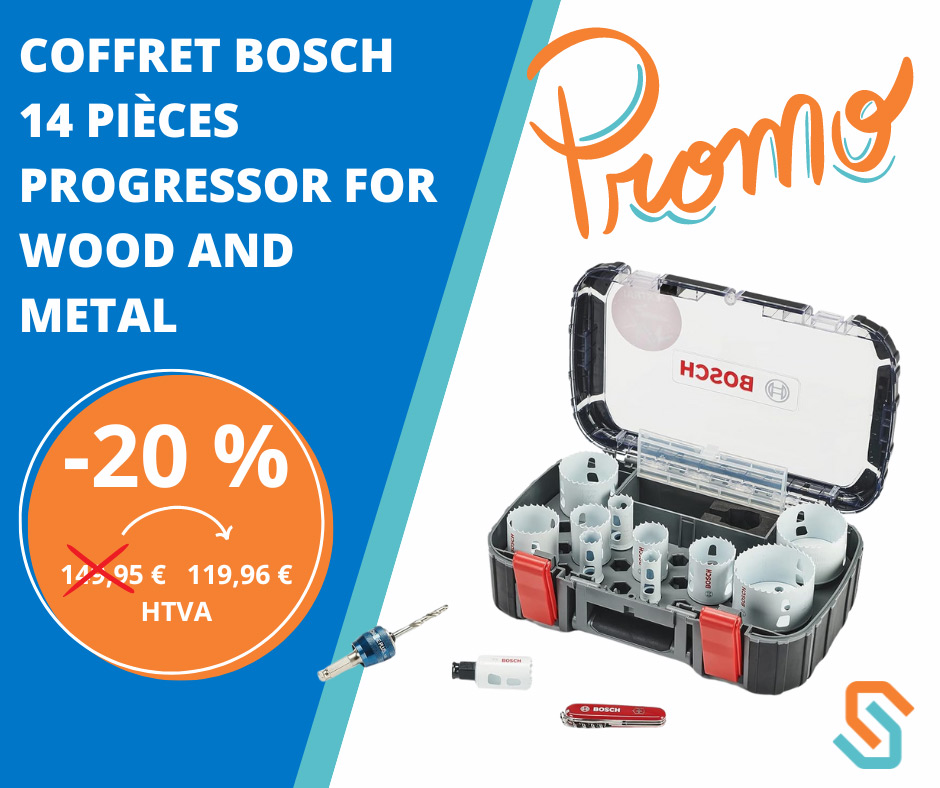 – 20 % sur le coffret BOSCH 14 pièces Progressor for Wood and Metal.